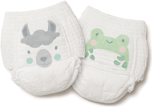 Kit & Kin eco nappy pants with llama and frog animal prints, sizes 4 to 8